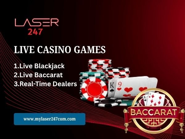 The Mylaser247 live casino brings real-time action directly to your screen. Play with professional dealers and enjoy an immersive experience.